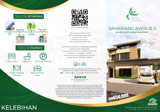 Semariang Avenue Phase 2 is located adjacent to SAMARIANG AVENUE which consists of 28 units of Double Storey Terrace Houses. The project will be launched in December 2024 and with starting prices of RM 650,000. These 4 bedroom and 4 bathroom modern homes will be equipped with the Google Smart Home system and will be 1st Solar Ready Homes in Sarawak.