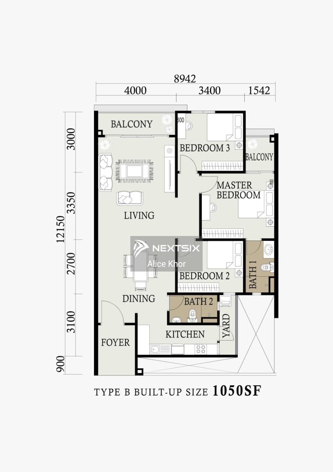 1,050Square Feet