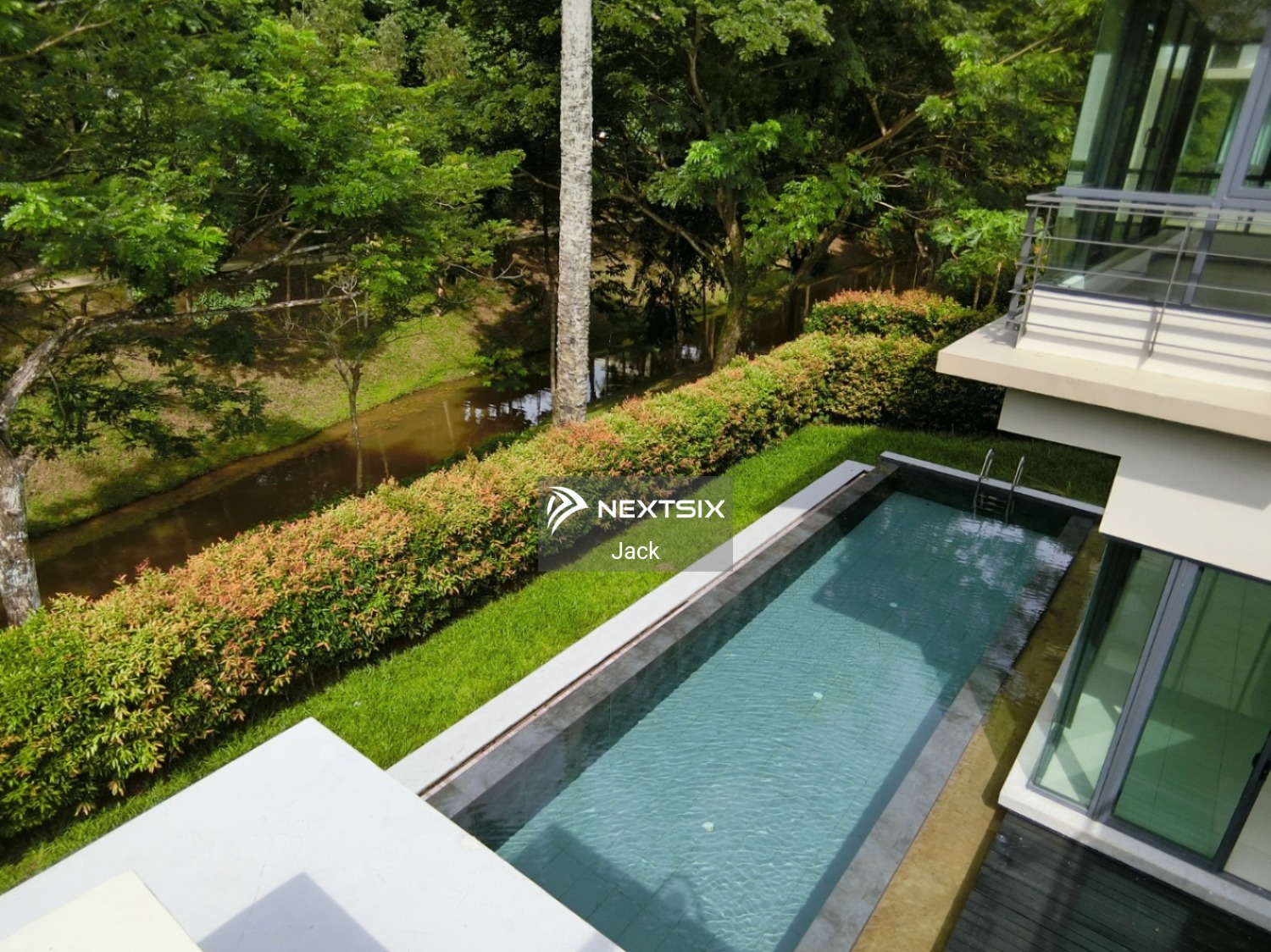 Corner lot with swimming pool and lake view