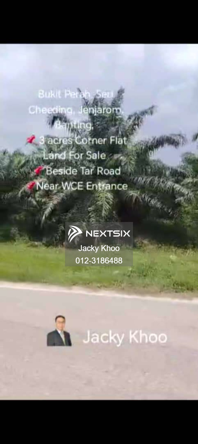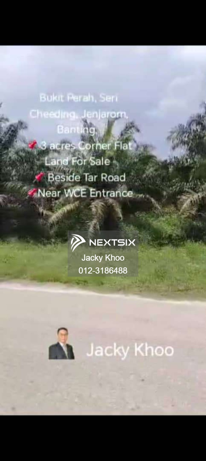 Bukit Perah, Seri Cheeding, Jenjarom, Banting, ๐ 3 acres Corner Flat Land For Sale ๐ Beside Tar Road ๐Near WCE Entrance ๐3 Acres Flat Land ๐ Freehold ๐ * Non Bumi Lot ๐ Suitable for Build Storage and warehouse ๐Suitable for future development ๐Near WCE Highway ๐Same Road Got develop New Driving School in progress ๐Banting (11 KM) ๐Jenjarom (12 KM) ๐ฅฐ Selling Price RM 3,000,000 (375) ๐Contact/ WhatsApp Jacky Khoo ( REN 63694 ) 0123186488
