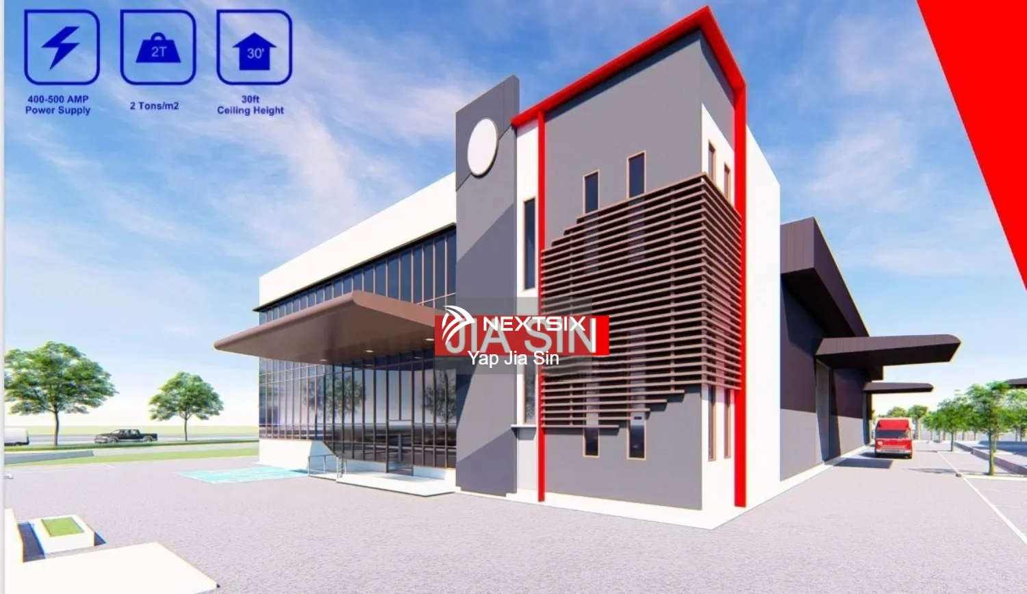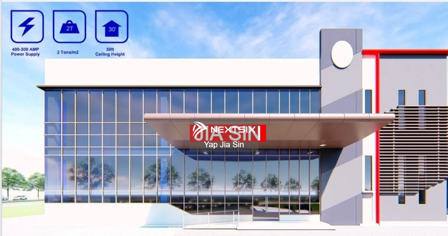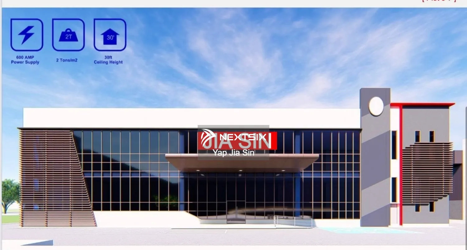 - land area 土地面积42075 SQFT to 91723 SQFT - build up建筑面积 from 23565 sqft to 30368 sqft - electricity power supply 电源400 AMP TO 600 AMP - ceiling height 天花板高度30 ft - floor load 地板负载2 ton per sqm - price from RM9.5m to RM18m
