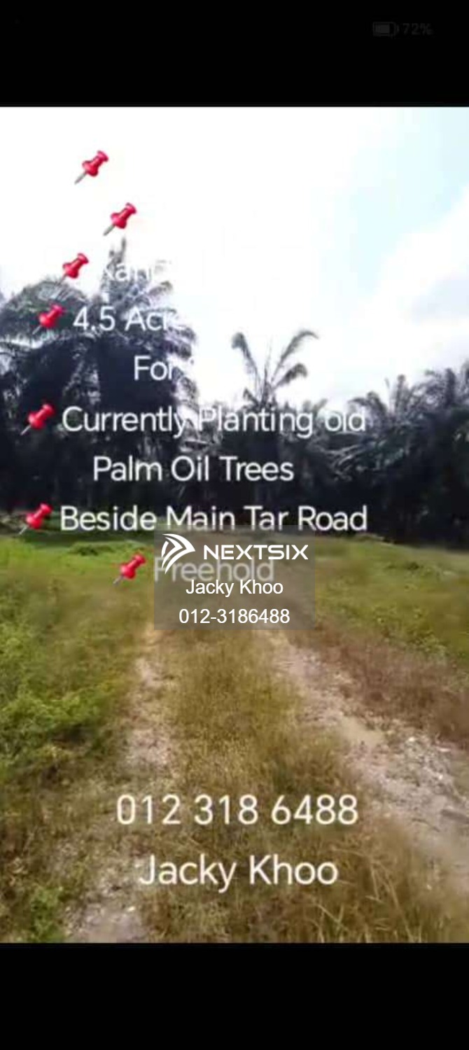 Kanchong Darat ๐4.5 Acres Flat Land For Sale ๐Currently Planting old Palm Oil Trees ๐Beside Main Tar Road ๐4.5 Acres ๐Agricultural Land ๐Freehold ๐Non Bumi Lot ๐Same Road got new Housing garden ๐RM 620K per acre ๐Total RM 2.79 MIL (283) ๐Jacky Khoo 0123186488