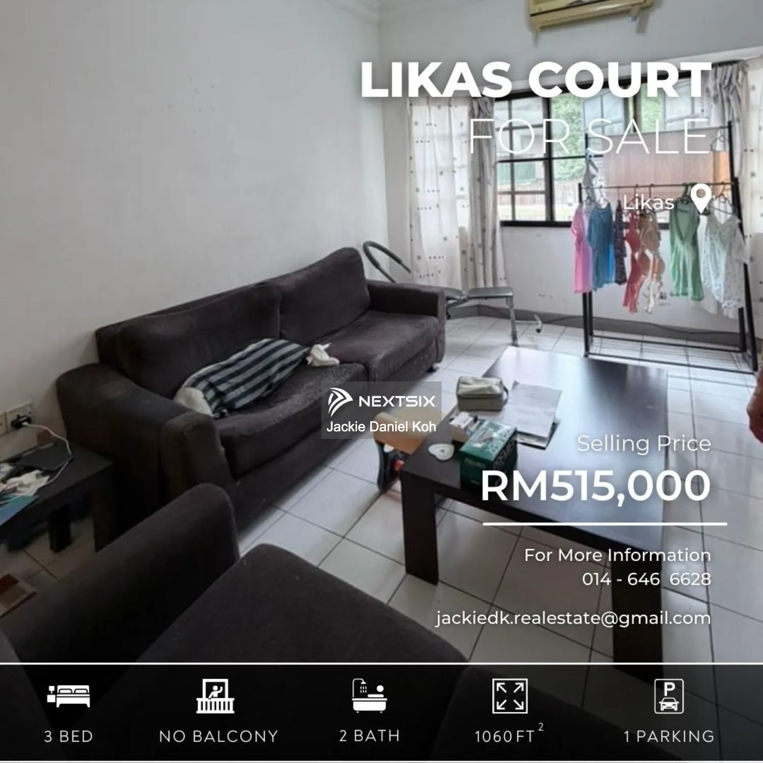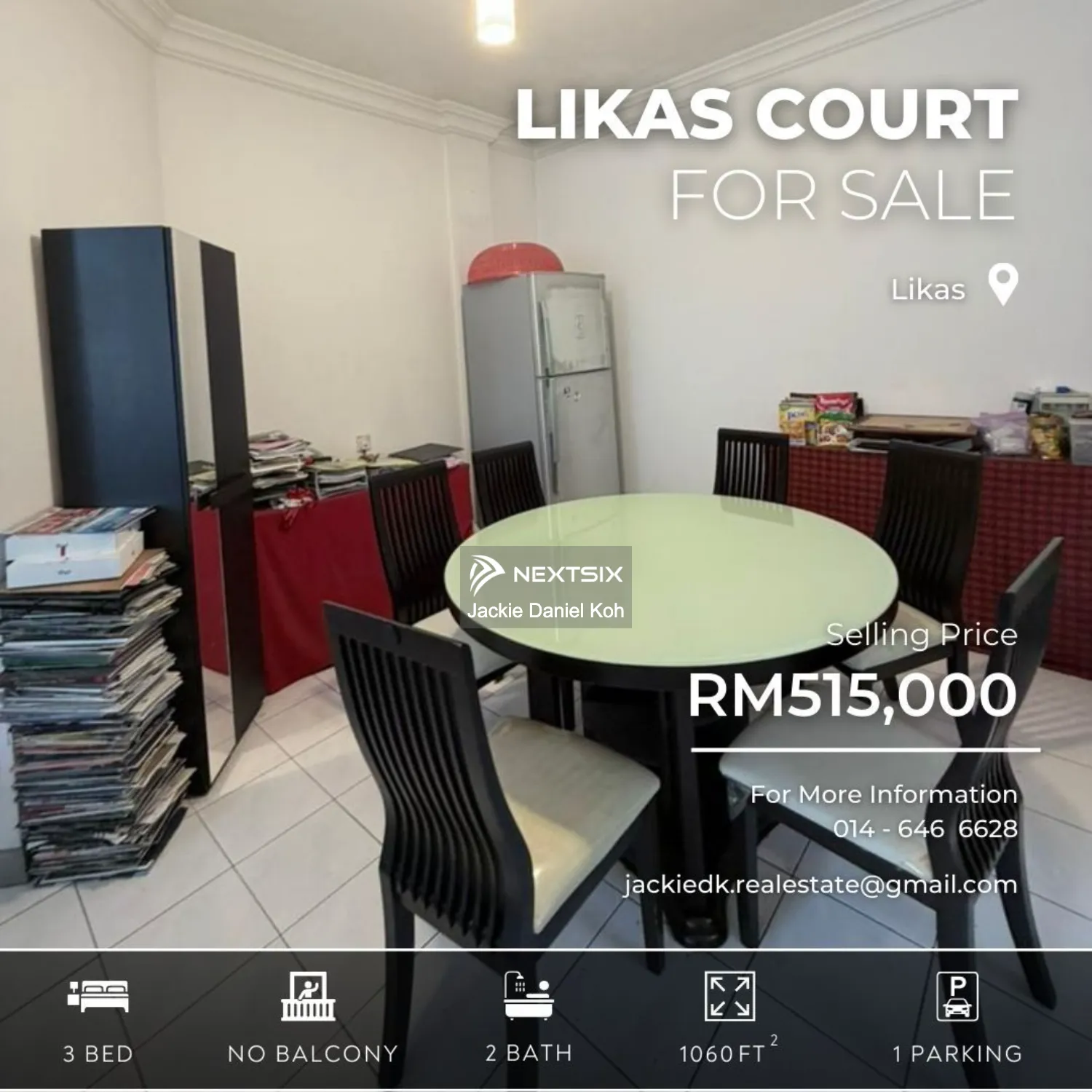 🏢 FOR SALE [LIKAS COURT APARTMENT] 💰 Selling Price: RM515,000 📌 PROPERTY DETAILS 🏠 Built-up: 1060 sq. ft (Ground Floor) 🛏 Bedrooms: 3 🛁 Bathrooms: 2 🚗 Car Parks: 1 🛋 Furnishing: Fully 🌿 Balcony: No ✨ HIGHLIGHT FEATURES 1️⃣ Bedrooms • Air-conditioning • Ceiling fan • Wardrobe • Bed Frame 2️⃣ Living Area • Air-conditioning • Ceiling fan • Sofa • Dining Set 3️⃣ Kitchen • Built-in cabinets • Sink • Gas • Refrigerator 4️⃣ Yard / Utility Area • Washing machine