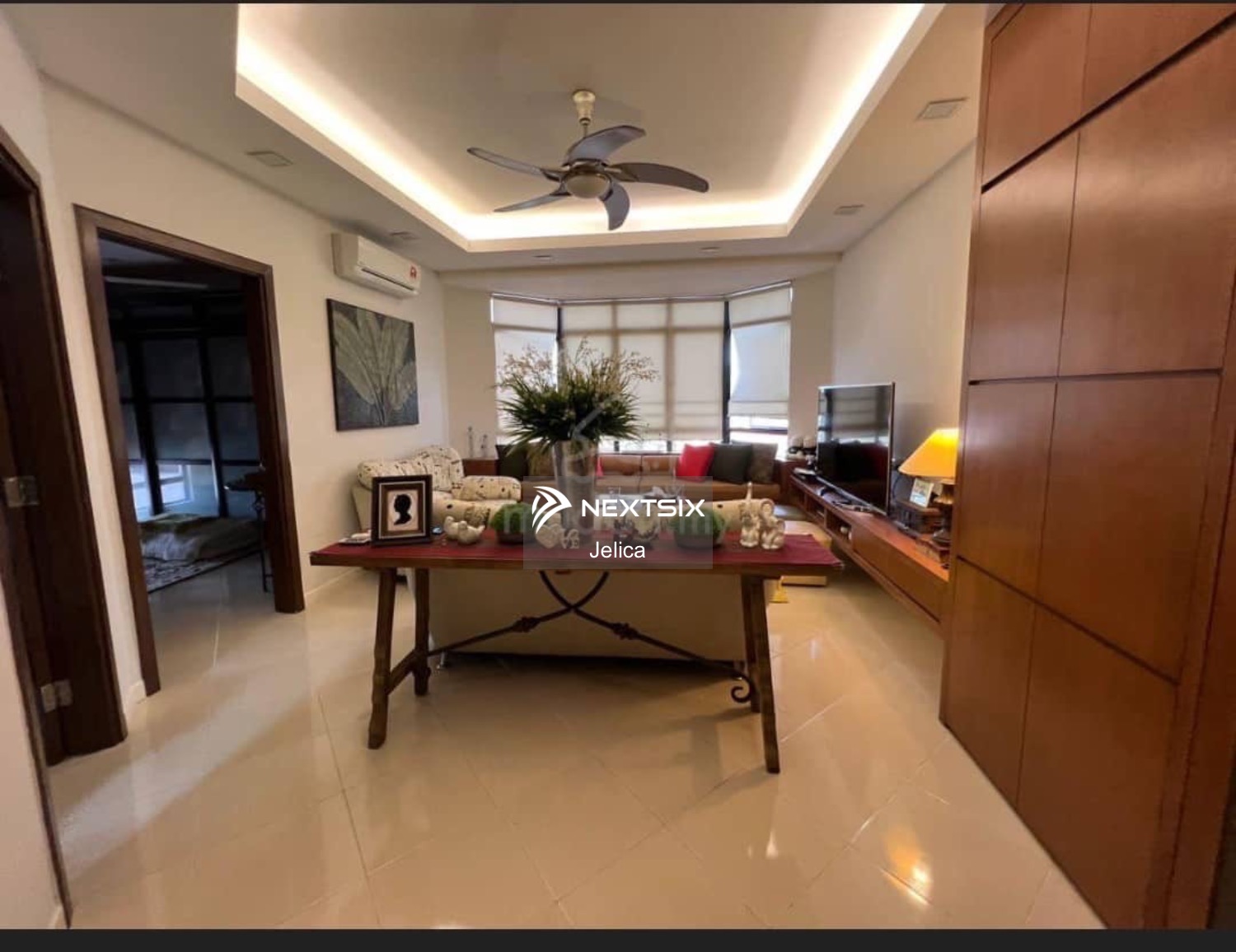 Condo Pearl Tower, Kolombong, For Sale -Level 6 -3bedrooms -1 store -2 bathrooms -1,428.37 SQ ft -1 stock -1 carpark -Fully Furnished -Living room window view Mount Kinabalu. selling price: rm750,00 (nego)