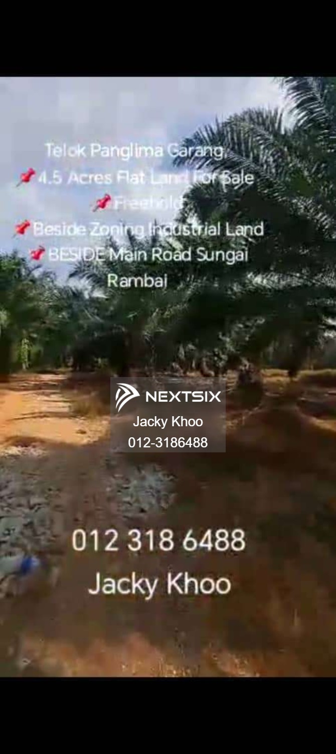 Telok Panglima Garang, ๐4.5 Acres Flat Land For Sale ๐Freehold ๐Beside Zoning Industrial Land ๐BESIDE Main Road Sungai Rambai ๐Current planting old Palm Oil Trees ๐Zoning Residential ๐Beside Main Road Sungai Rambai ๐Jenjarom 5 KM ๐Teluk Panglima Garang 6 KM ๐Suitable for Business needs Road side ๐Beside Zoning Industrial Land ๐Selling Price RM 6,750,000.00 (338) ๐JACKY KHOO 0123186488