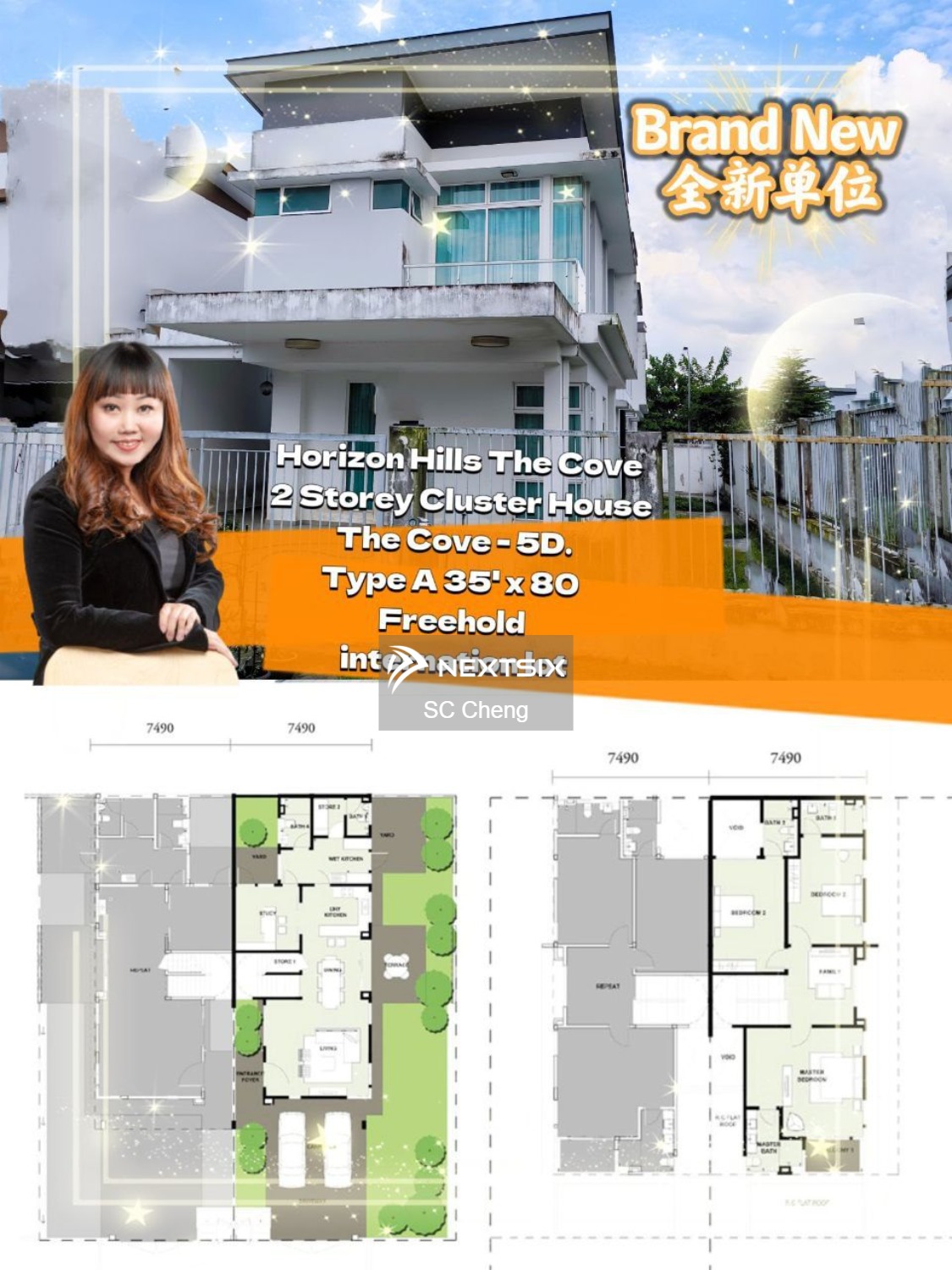 For Sale Brand New unit Horizon Hills The Cove 2 Storey Cluster House, Jalan Serambi,Iskandar The Cove - 5D. Type A 35' x 80 Freehold internation lot