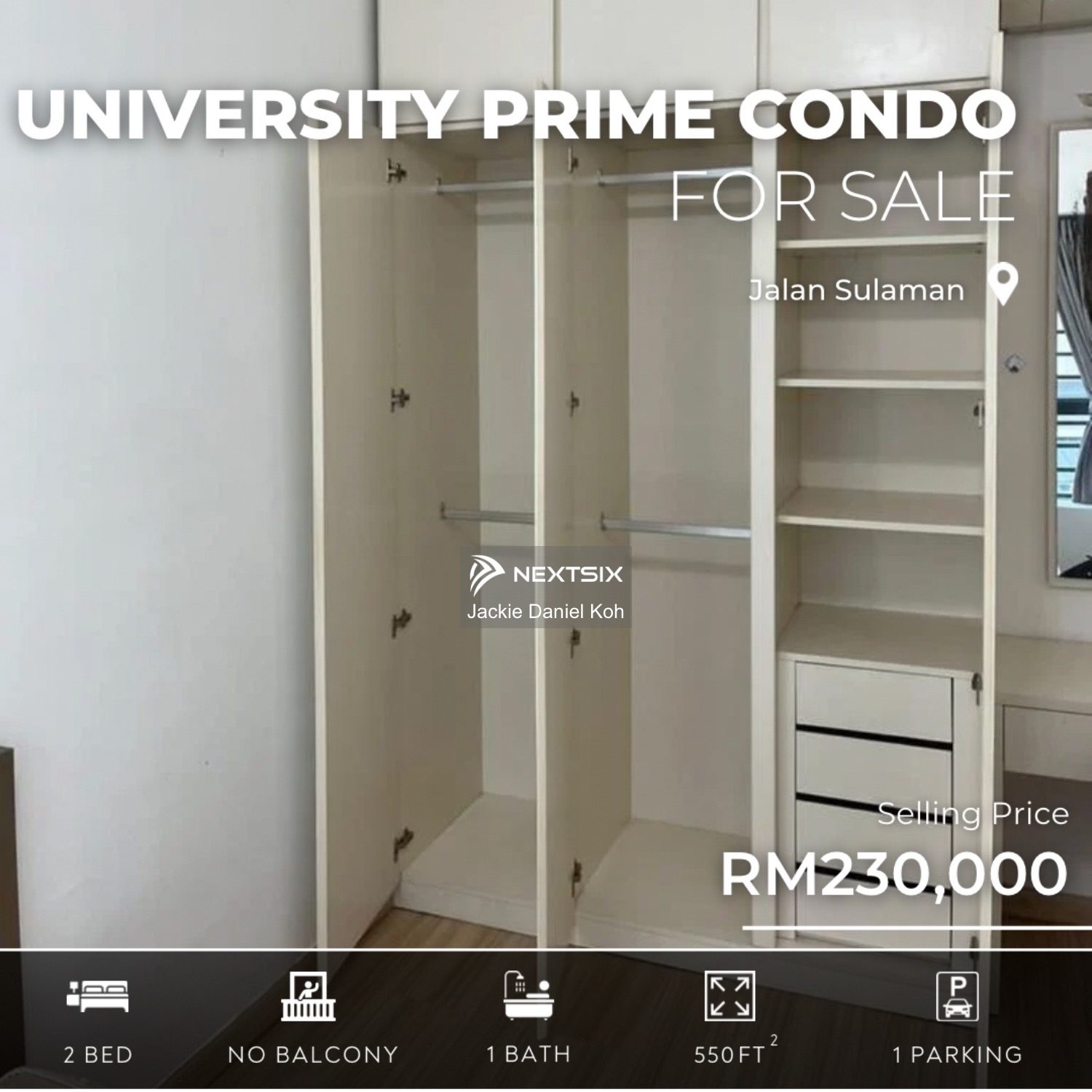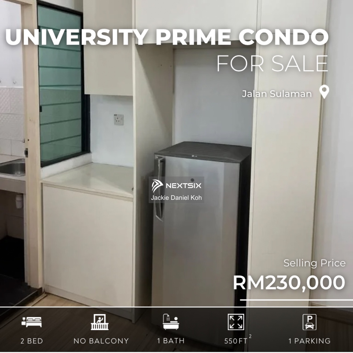🏢 FOR SALE [UNIVERSITY PRIME CONDO] 💰 Selling Price: RM230,000 📌 PROPERTY DETAILS 🏠 Built-up: 550 sq. ft 🛏 Bedrooms: 2 🛁 Bathrooms: 1 🚗 Car Parks: 1 🛋 Furnishing: Fully 🌿 Balcony: No 🏠 Unit: UPC, Block D-11-1, 1st Floor 📋 Occupied: Tenanted until December 2026 ✨ HIGHLIGHT FEATURES 1️⃣ Bedrooms • Air-conditioning • Ceiling fan • Built-in wardrobe 2️⃣ Living Area • Air-conditioning • Ceiling fan • Sofa • Dining Set 3️⃣ Kitchen • Built-in cabinets • Sink • Gas • Refrigerator 4️⃣ Yard / Utility Area • Washing machine
