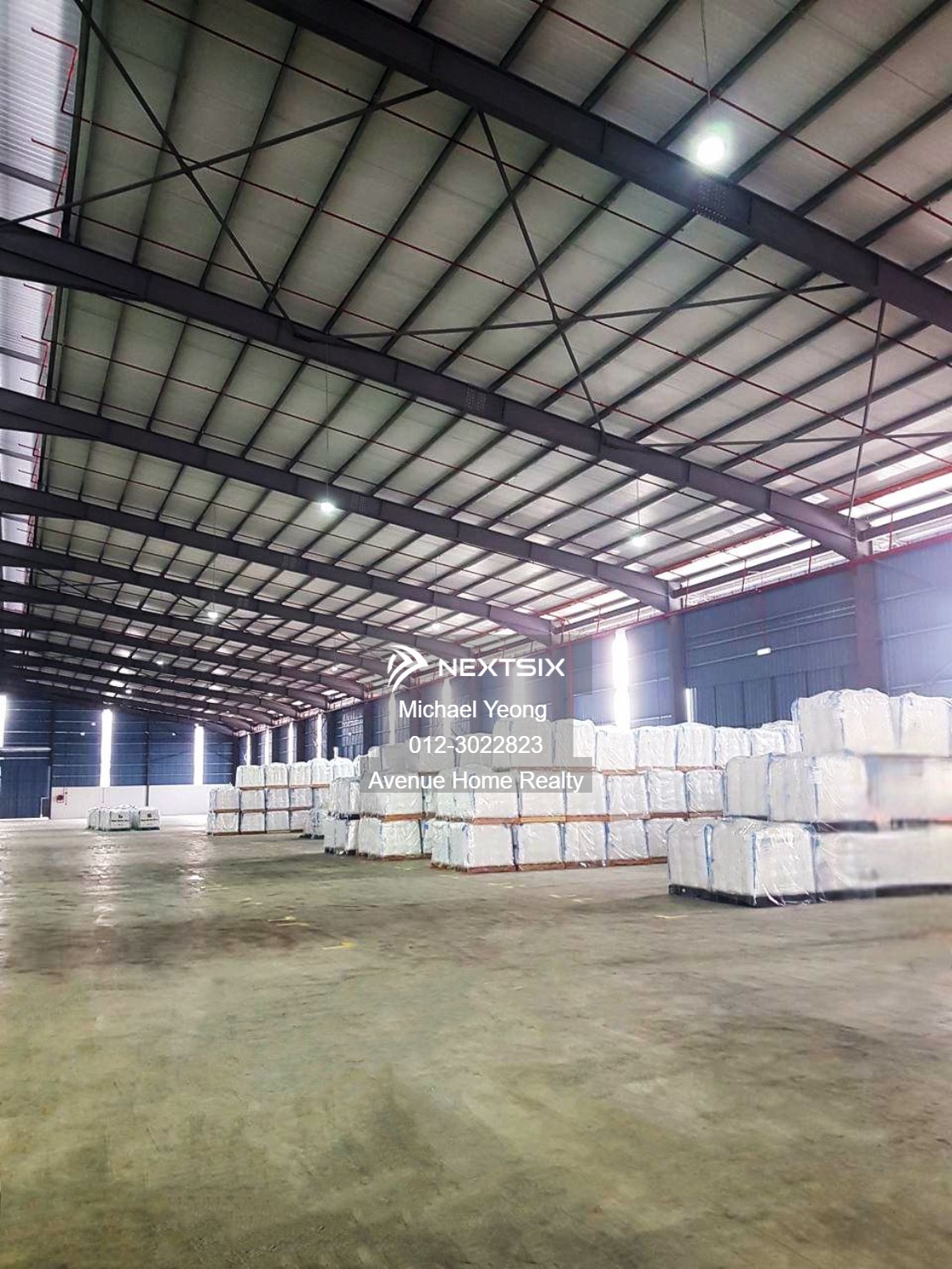 Warehouse @ Port Klang,Selangor Land Area - 2.6 acres Total Build Up - 63000sf Power Supply - 200amps Ceiling Height - 40ft (centre) Floor Loading - 3ton per sq m2 Rental Price - RM107100 012-3022823